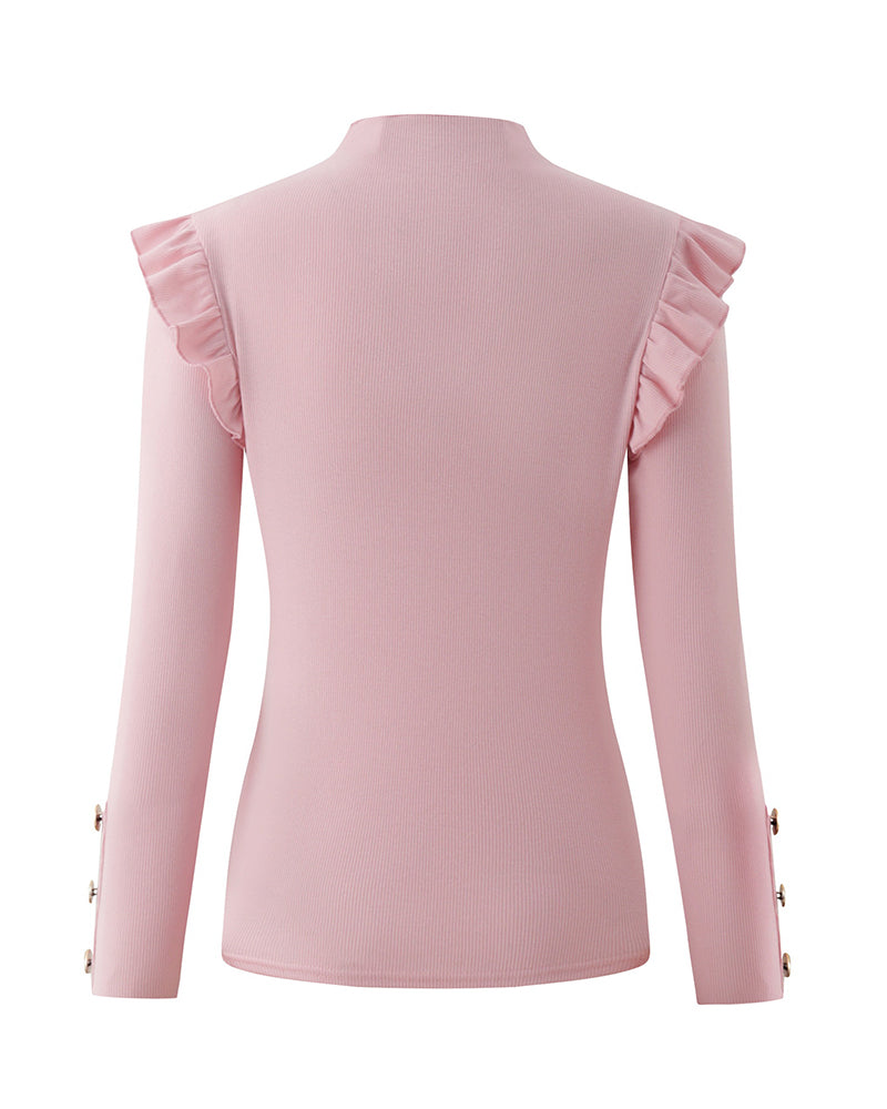 Weronika | Elegancka Bluzka z Falbanką i Guzikami